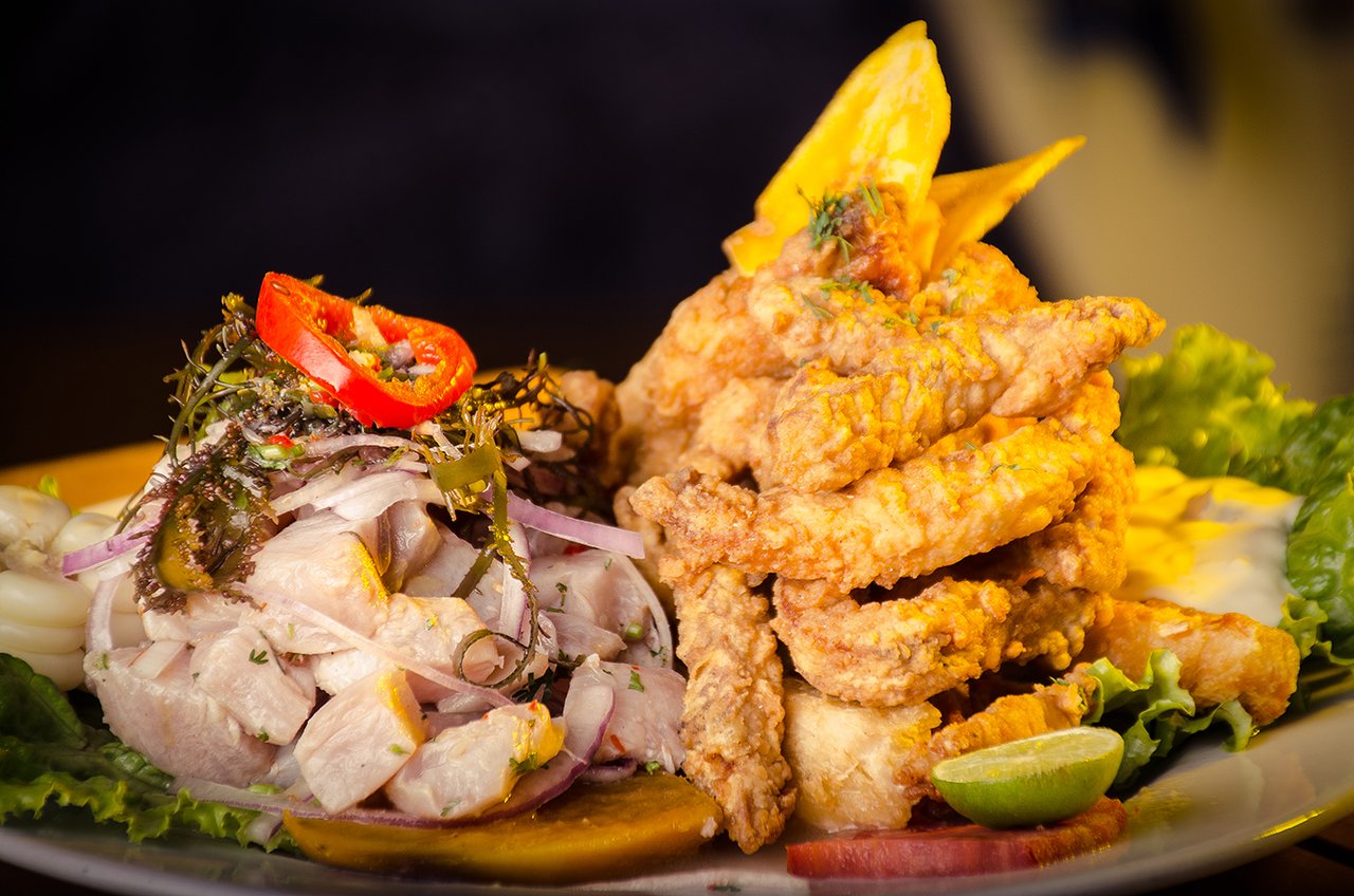 Ofrecemos menú ejecutivo, triple Arequipeño: porción de lechón + pastel de papa + suflé de rocoto y sarsa criolla.